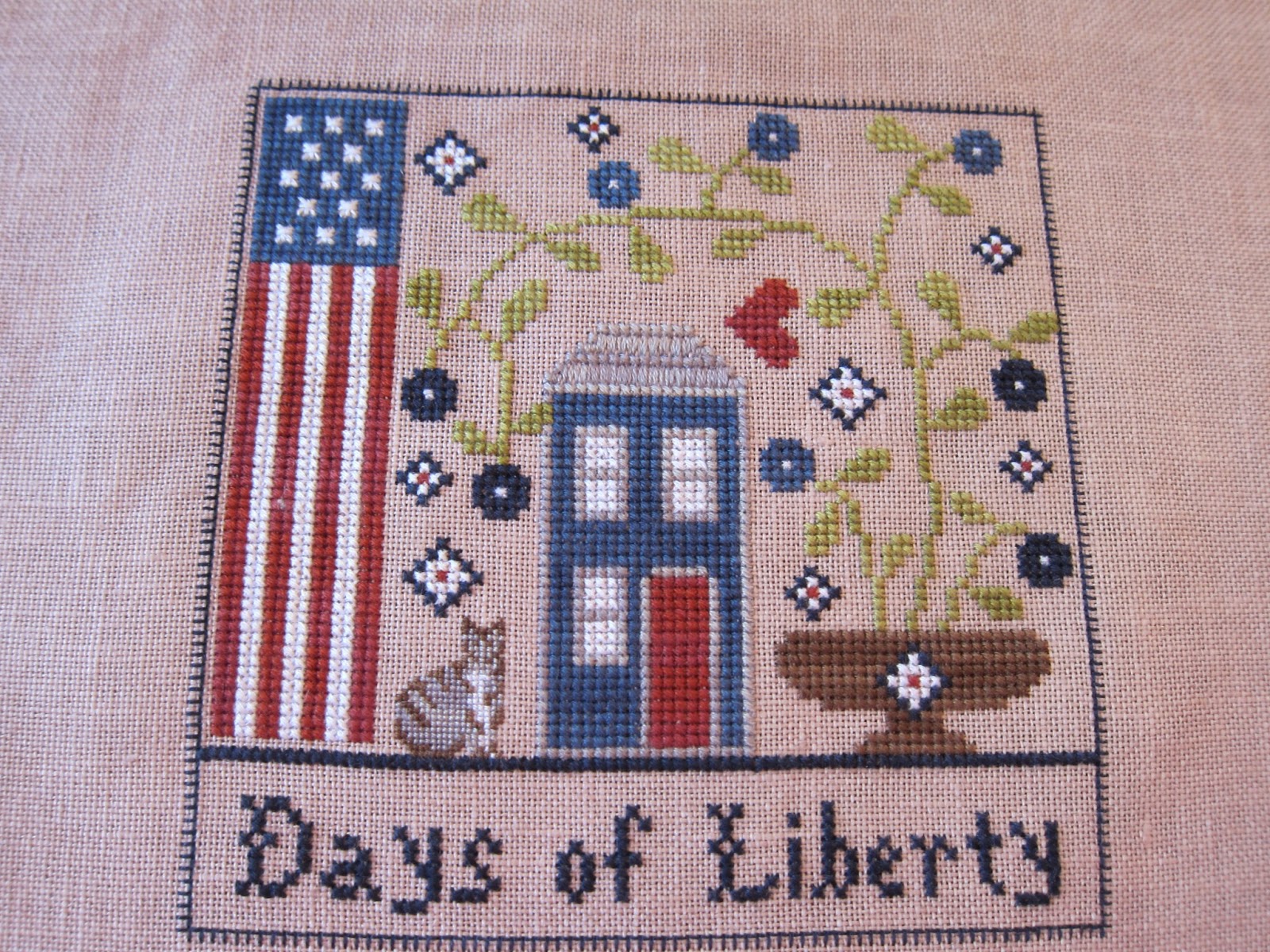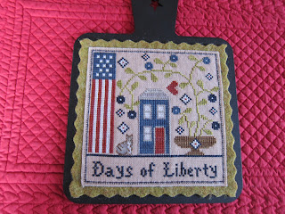 One of the other clubs I joined is the Seasons of Chessie and Me club. I adore her designs and couldn't wait to do the first design. It's called Days of Liberty. The kit came with everything including felt and a beautiful hornbook.